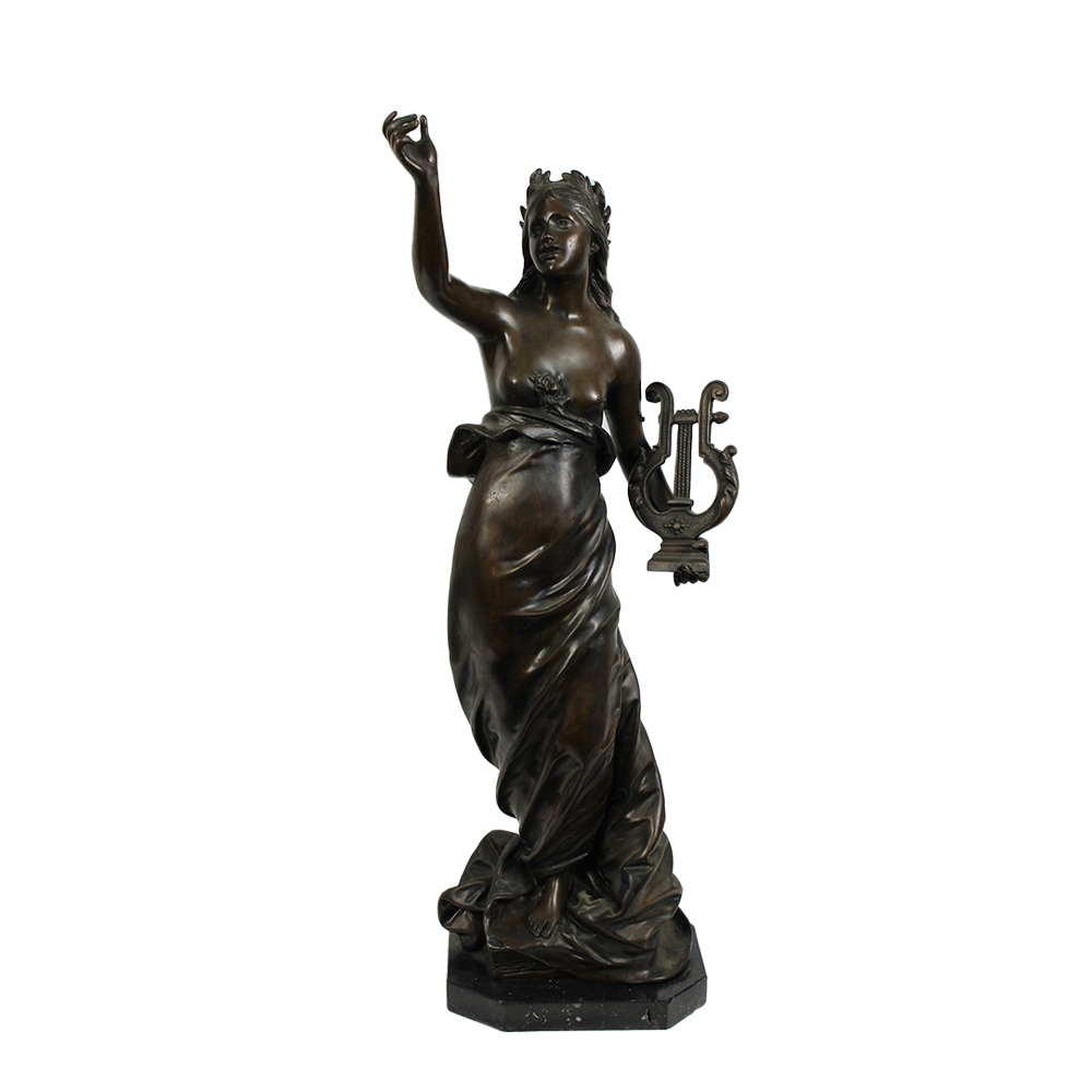 SCULTURA in bronzo raffigurante Musa con la lira con base in marmo da Moreau fonderia italiana XX secolo h cm 71,5 x 22 x 16