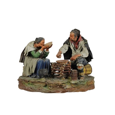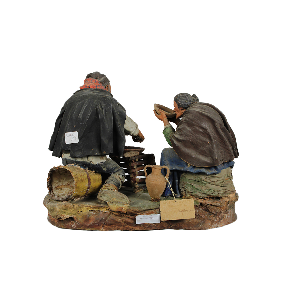 GRUPPO in terracotta policroma raffigurante scena di vita con personaggi etichetta non leggibile Caltagirone XIX secolo h cm 25 x 32 x 17