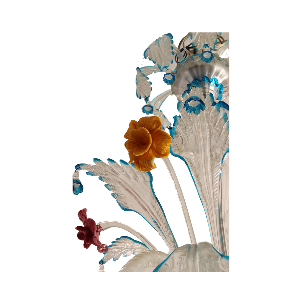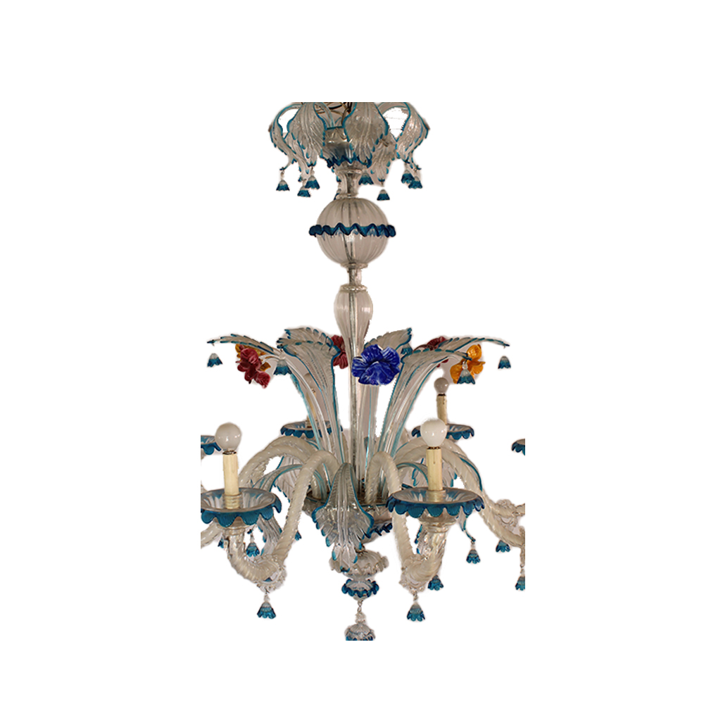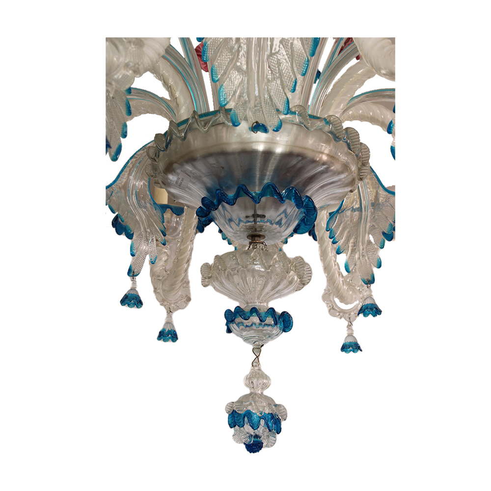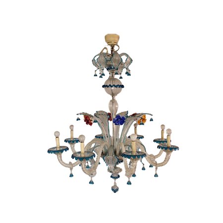LAMPADARIO in vetro di Murano a policromia nel tono del blu a 8 luci Venezia primi 900 h cm 130 x 100 x 100