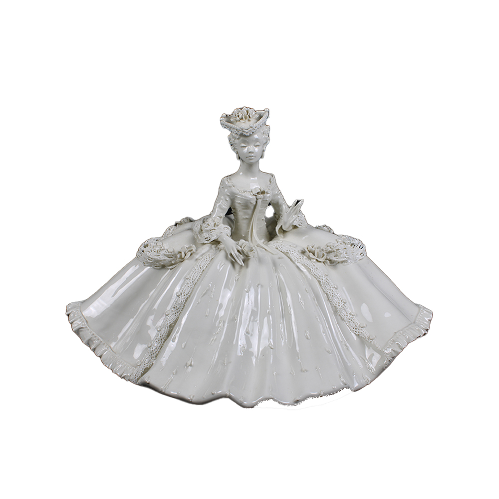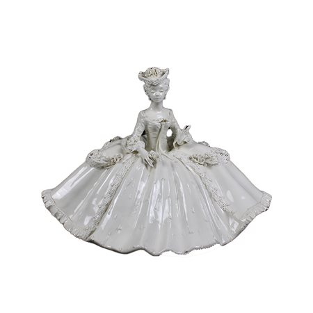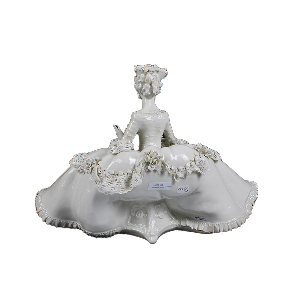 SCULTURA in porcellana bianca raffigurante donna in abito da ballo settecentesco manifattura Tosin Italia primi 900 h cm 31 x 46 x 27