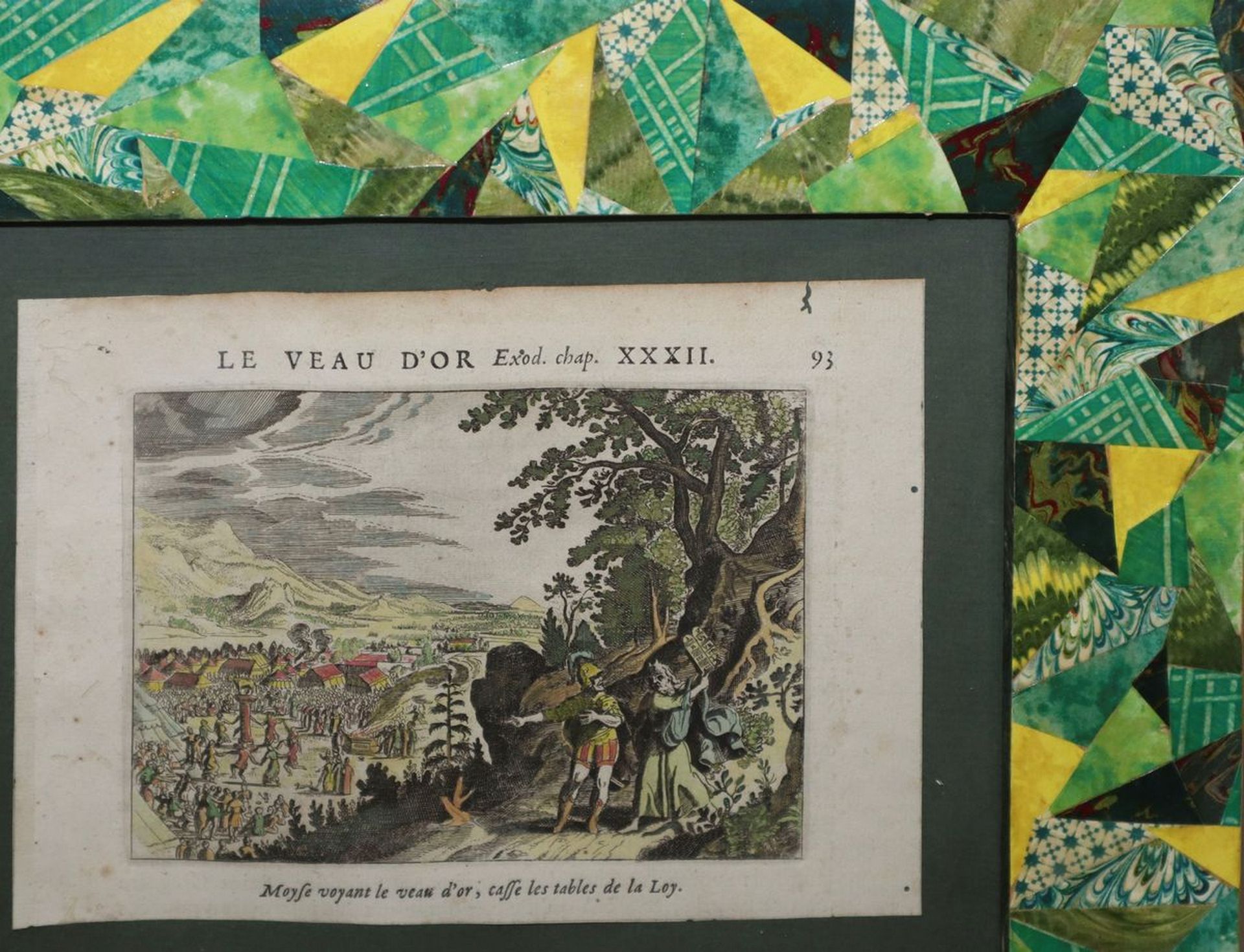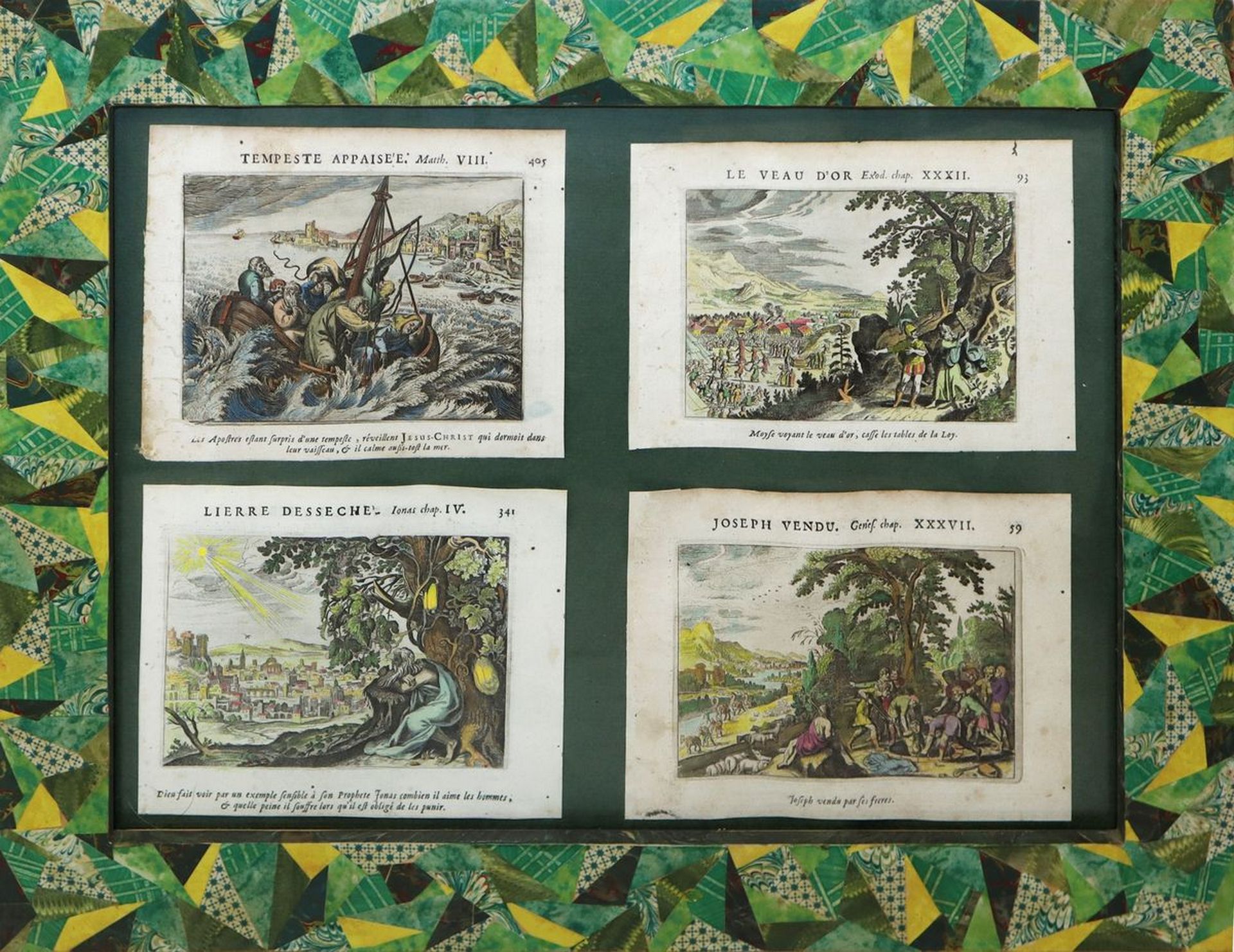 N.4 Incisioni acquerellate raccolte in cornice, 17th Century