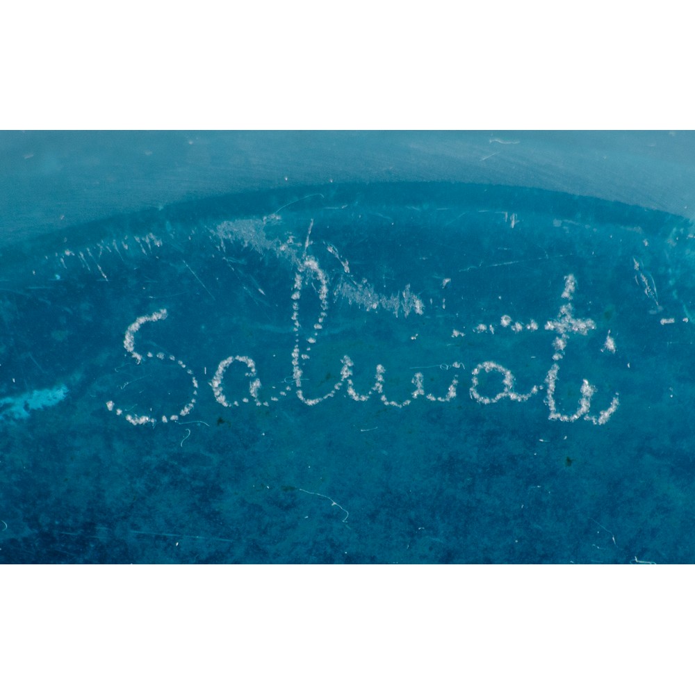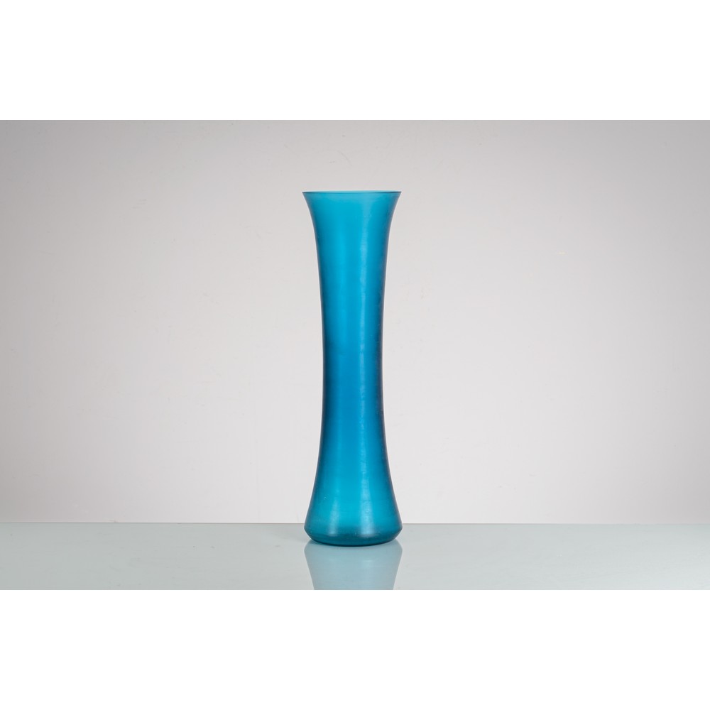 Vaso in vetro “Satin” blu, corpo a tromba con bocca piana circolare. Firma a graffio.