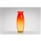 Vaso in vetro soffiato e decorato a sfumare giallo e rosso, corpo ovalizzato con basso collo e bocca circolare lievemente estroflessa. Firma a graffio ed etichetta.
