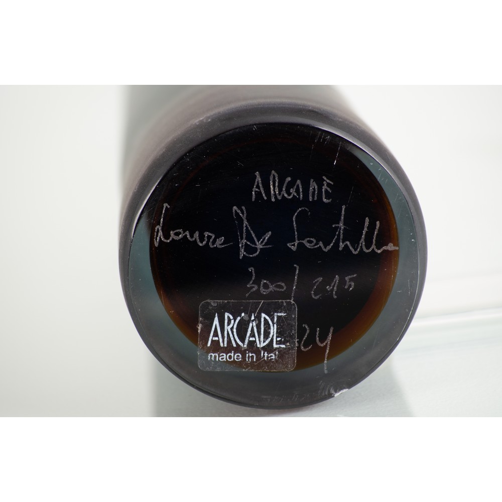Due bottiglie “Bambù” della serie "Antology" in vetro soffiato di colori differenti con superficie satinata, corpo cilindrico con lungo e stretto collo a portamento libero. Ciascuno reca alla base firma a punta e numero di serie limitata: 300/103 e 300/104.