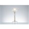 Lampada da tavolo ad una luce, struttura in ottone e vetro incolore, diffusore a campana in vetro parzialmente rostrata e bullicante, base circolare bullicante.