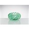 Coppa in vetro acidato verde ed oro con corpo circolare e lavorata con grosse costole diagonali, bocca circolare ondulata.
