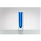 Vaso in vetro sommerso incolore, azzurro, verdino e blu, corpo a parallelepipedo con bocca quadrata piana.