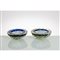 Coppia di ciotole in vetro sommerso incolore, paglierino e blu, corpo semisferico a costole diagonali, bocca circolare.
