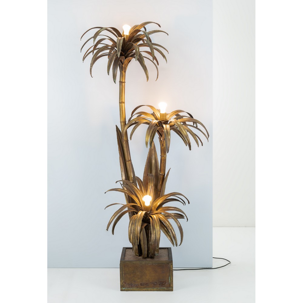 Lampada da terra a tre luci modello "Palm Tree Floor", struttura in metallo dorato, basamento in ottone e resina.