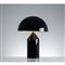 Lampada da tavolo ad una luce modello “Atollo”, struttura e diffusore semisferico in metallo verniciato nero e bianco.
