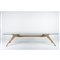 Raro tavolo da riunione con ossatura in legno di acero, minuterie in ottone, piano ovalizzato in cristallo incolore di grosso spessore con bordi scalpellati e molati. Provenienza famiglia industriali italiani, tavolo su commissione. Disegno cartaceo originale.