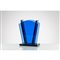 Vaso in cristallo blu, corpo a ventaglio, base rettangolare.
