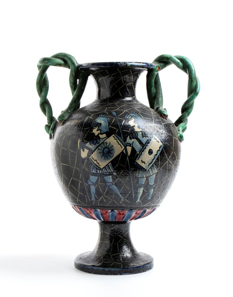 MANIFATTURA AVALLONE, Vaso biansato con guerrieri