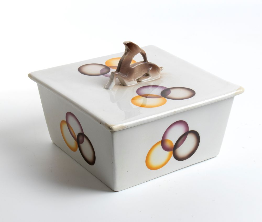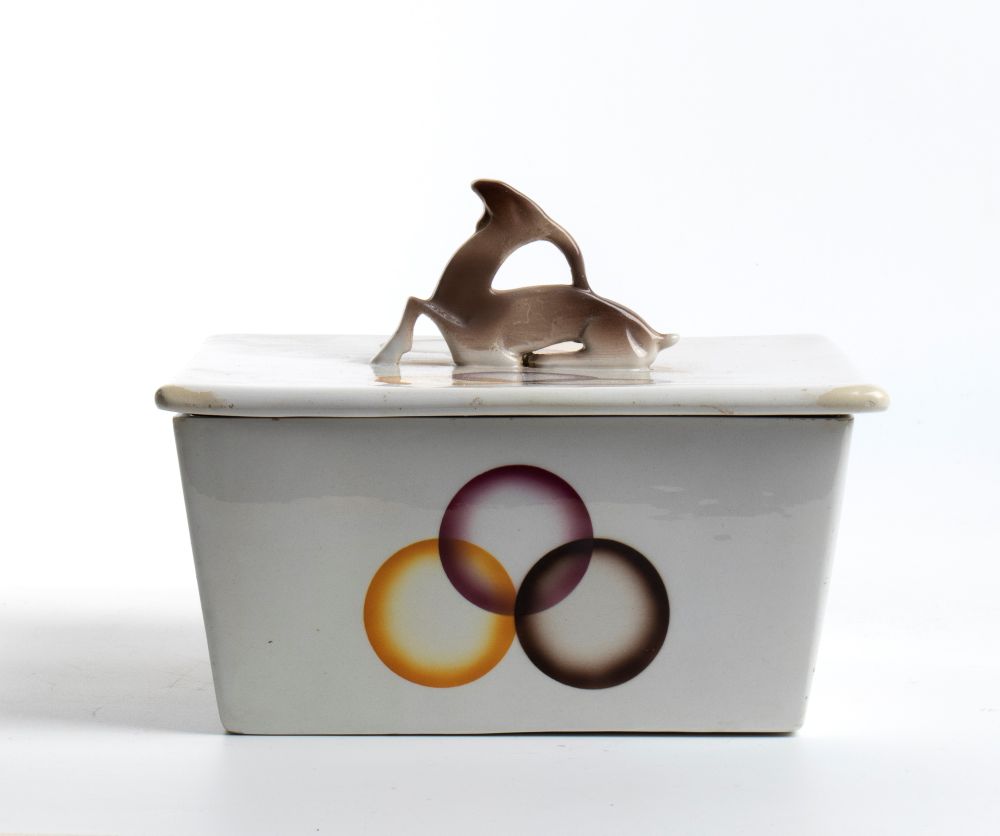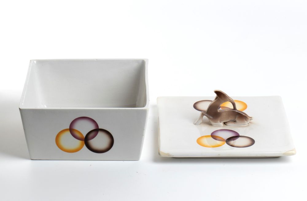 MANIFATTURA CERAMICA GALVANI, Scatola con manico zoomorfo attribuita a Angelo Simonetto