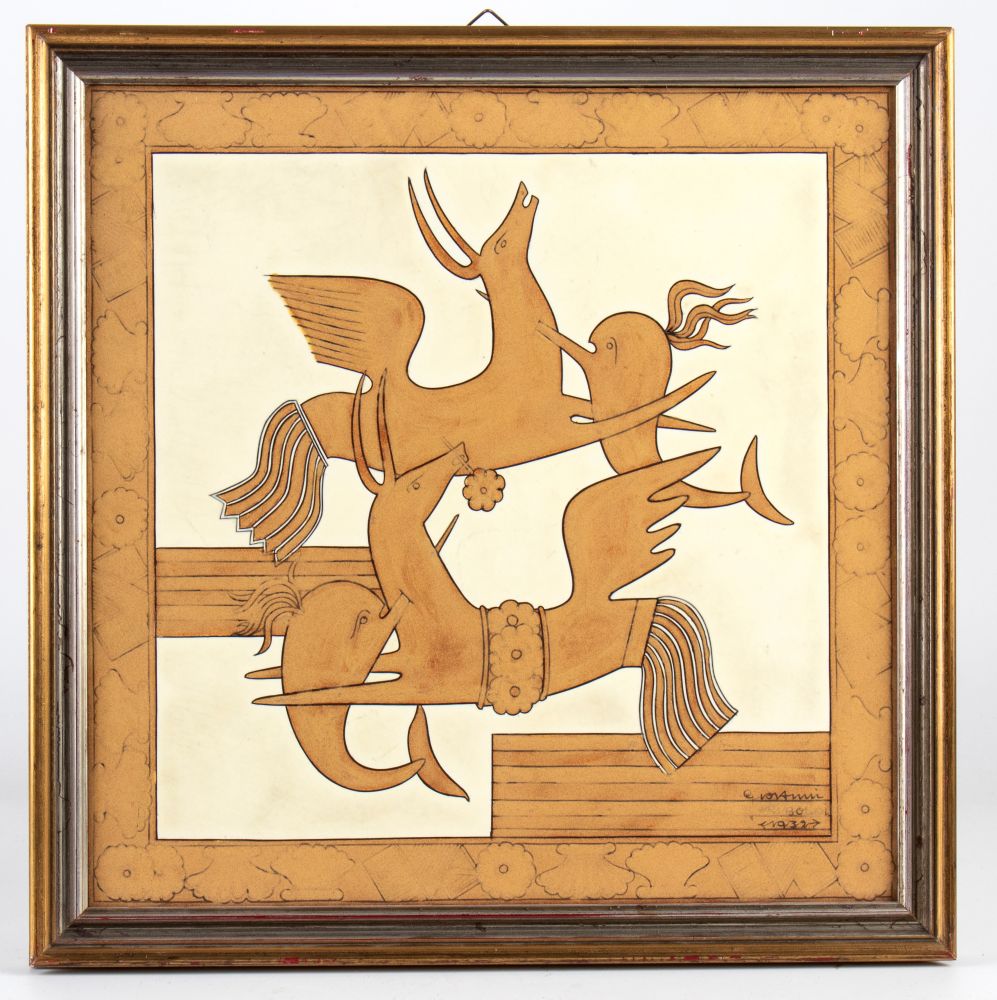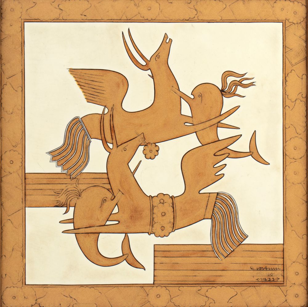 GIOVANNI GARIBOLDI, RICHARD-GINORI (Milano 1908 - 1971), Mattonella con decoro di animali fantastici