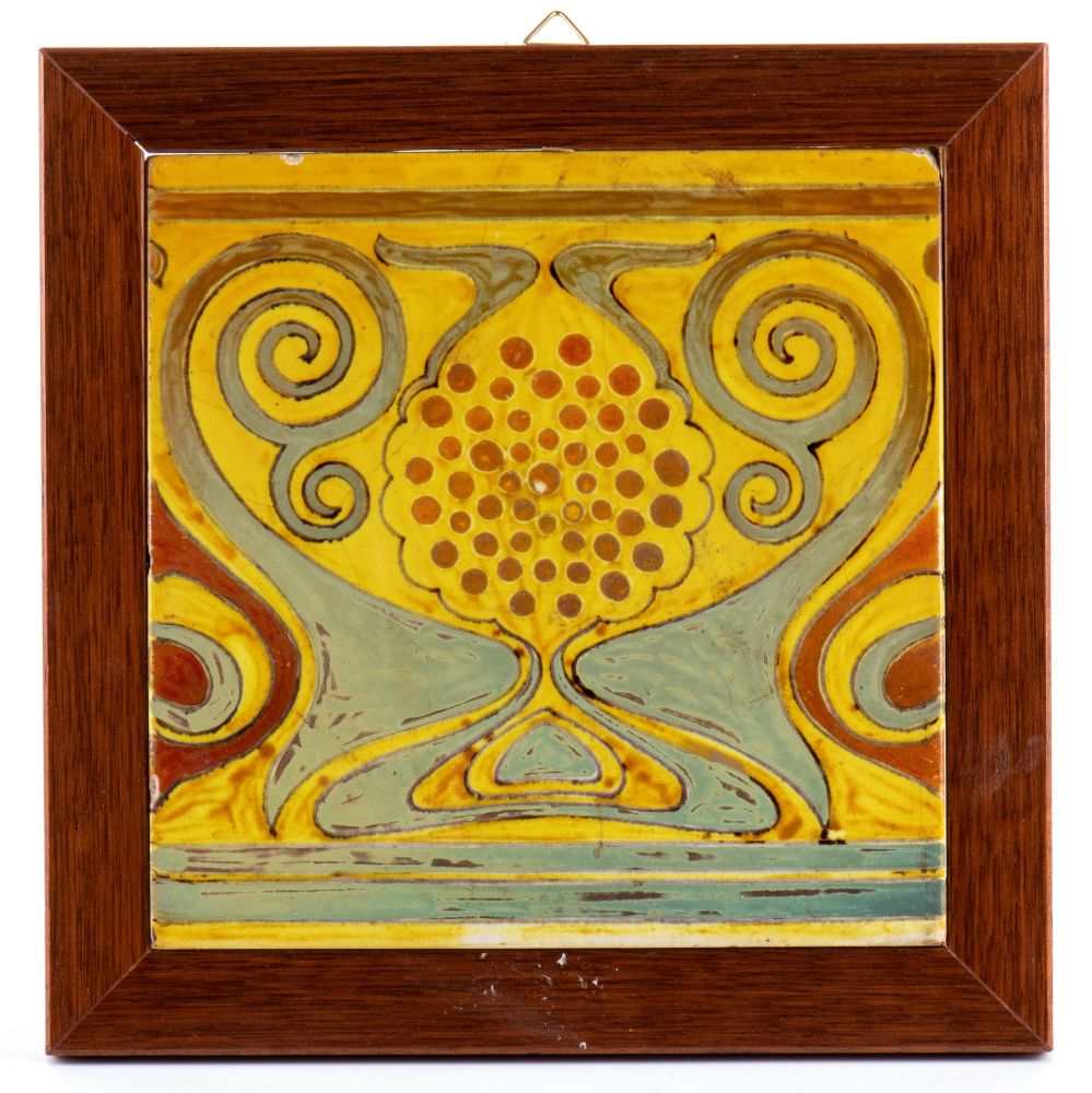 GALILEO CHINI (Firenze 1873 - 1956), Mattonella a decori gialli
