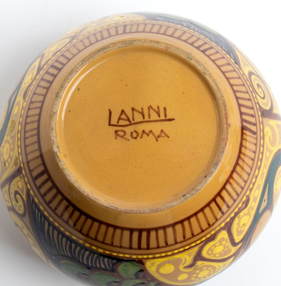 RUGGERO LANNI (XX secolo), Vasetto con decorazione di pavoni