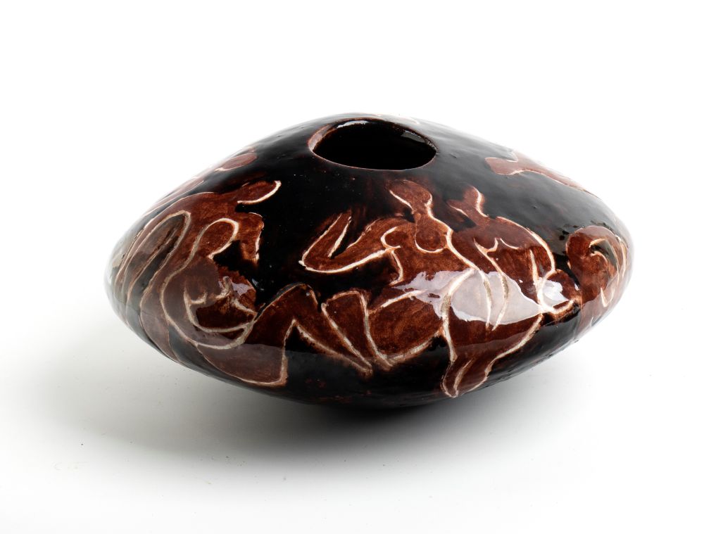EDVIN ÖHRSTRÖM (Burlöv 1906 - 1994), Vaso con decorazione di personaggi in marrone