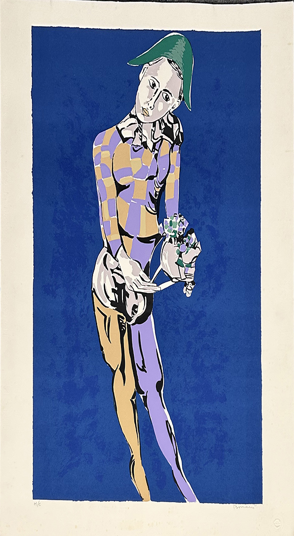 VINICIO BOSCAINI, litografia su cartoncino, cm 100x70x0,5, kg 0,5. Al fronte: tiratura H/C in basso a sinistra, firma e timbro edizioni del Cappello Milano in basso a destra. Al verso: firma. L'opera presenta leggera fioritura. Opera senza cornice