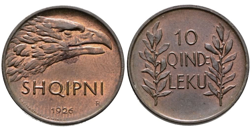 ALBANIA. 10 Qindar 1926. Cu; 6gr; KM 2; Raro; Q.FDC, rame rosso.