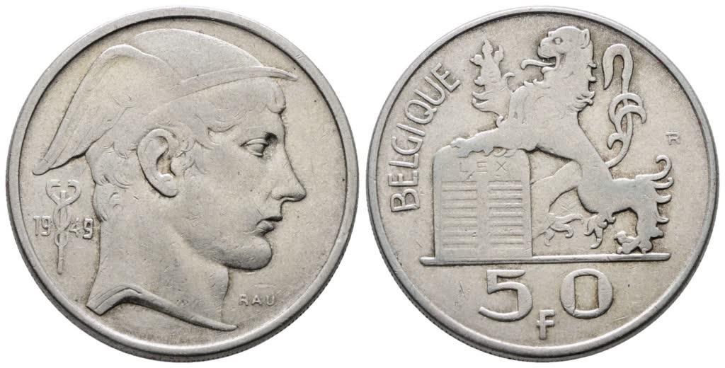BELGIO. Baldovino (1948-1993). 50 franchi 1949. KM 137; Ag; 12,5gr. qBB