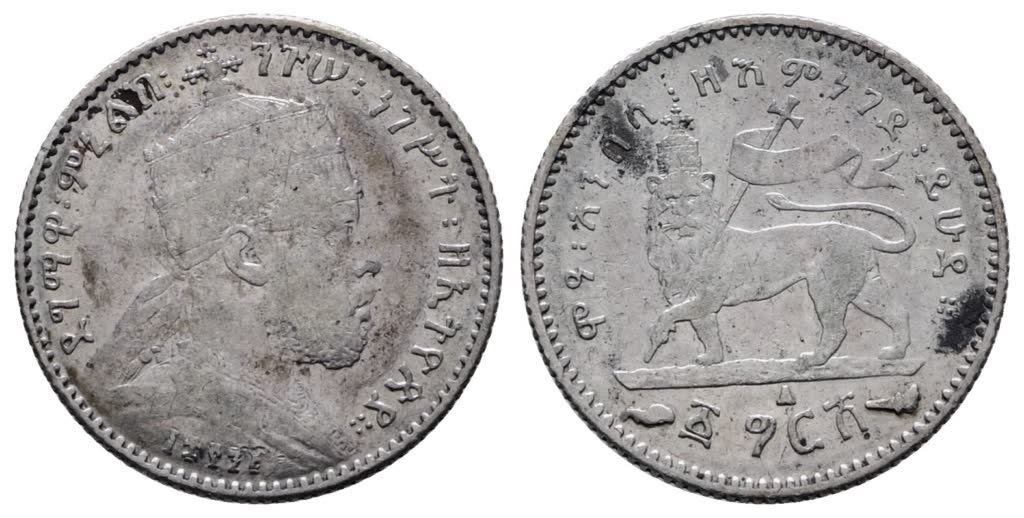 Lotto 85 | ETIOPIA. Menelik II (1889-1913). 1/20 birr 1889. KM 13; Ag; 1,40gr. BB+