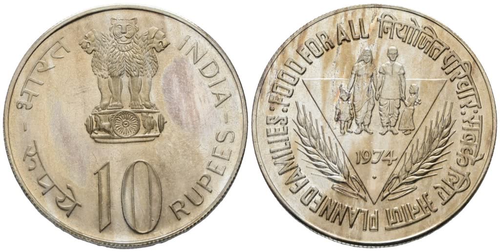 Lotto 128 | INDIA. 10 rupie 1974. Cu; 25,3; KM 189; FDC