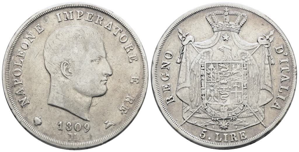 MILANO. Regno d'Italia. Napoleone I (1805-1814). 5 lire 1809. Ag; 25gr; Gig.104; BB