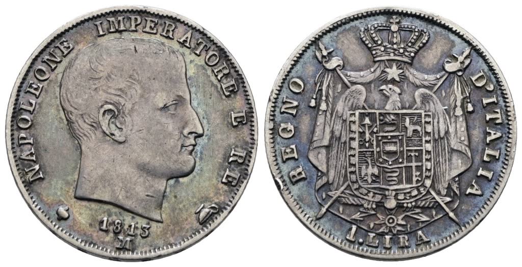 MILANO. Regno d'Italia. Napoleone I (1805-1814). 1 lira 1813 "puntali aguzzi". Ag; 5gr; Gig.162; RR; BB/SPL