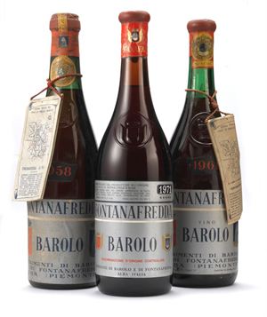 FONTANAFREDDA Lotto di n. 3 bottiglie: Barolo 1958 Barolo 1961 Barolo 1971...