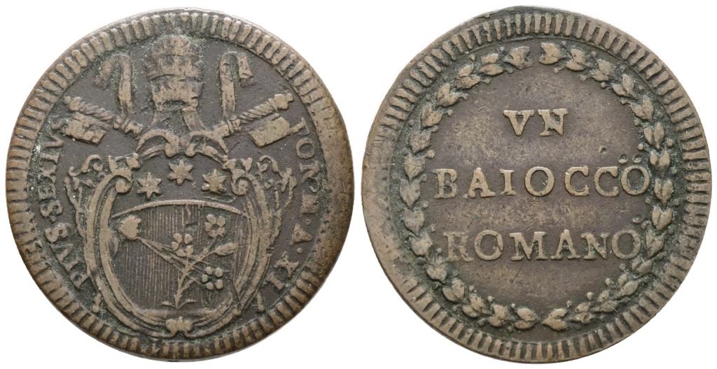 STATO PONTIFICIO. ROMA. Pio VI (1775-1799). Baiocco anno XI. Cu; 13gr; Munt.129; MIR 2792/5; NC; BB