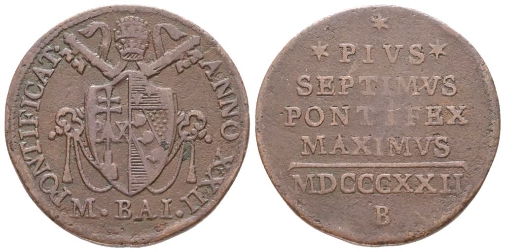 Lotto 646 | STATO PONTIFICIO. BOLOGNA. Pio VII (1800-1823). 1/2 Baiocco 1822. Cu; Gig.68; RR; BB