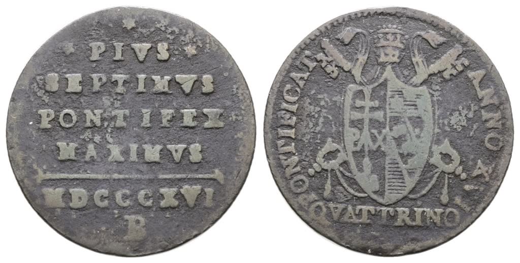 Lotto 648 | STATO PONTIFICIO. BOLOGNA. Pio VII (1800-1823). Quattrino 1816. Cu; 2,37gr; Gig.75; Q.BB