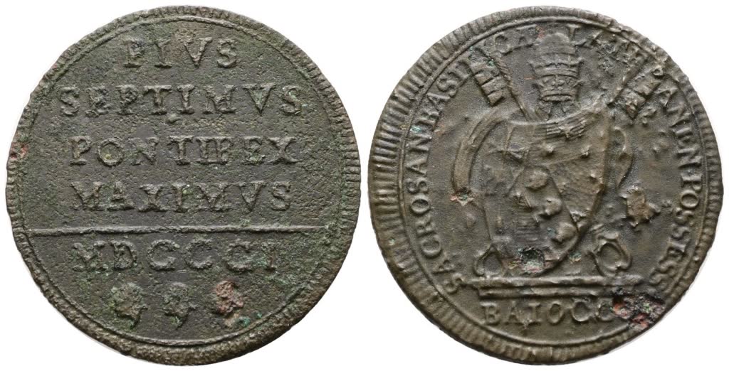 Lotto 653 | STATO PONTIFICIO. ROMA. Pio VII (1800-1823). Baiocco 1801. Cu; 12gr; Gig.53; MB/BB