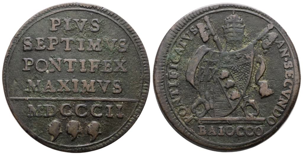 Lotto 654 | STATO PONTIFICIO. ROMA. Pio VII (1800-1823). Baiocco 1802. Cu; 12gr; Gig.54; BB