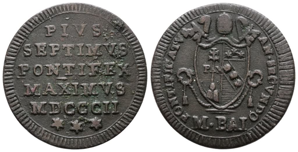 STATO PONTIFICIO. ROMA. Pio VII (1800-1823). Mezzo baiocco 1802. Cu; 6gr; Gig.62; BB