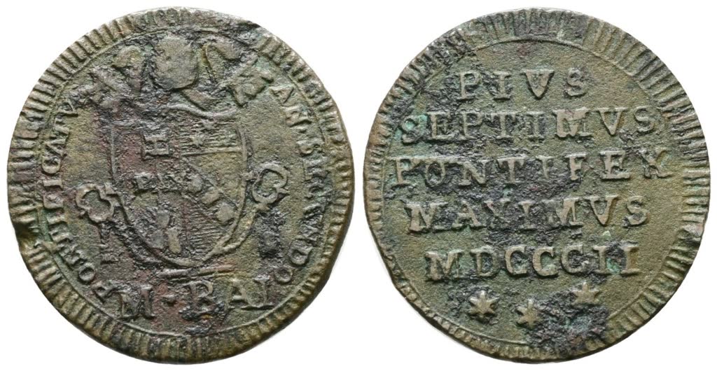 Lotto 662 | STATO PONTIFICIO. ROMA. Pio VII (1800-1823). 1/2 baiocco 1802. Gig.62; Cu; 6gr. BB