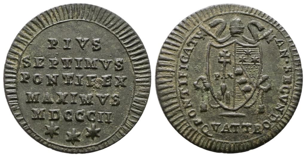 STATO PONTIFICIO. ROMA. Pio VII (1800-1823). Quattrino 1802. Cu; 2,4gr; Gig.71; BB/SPL