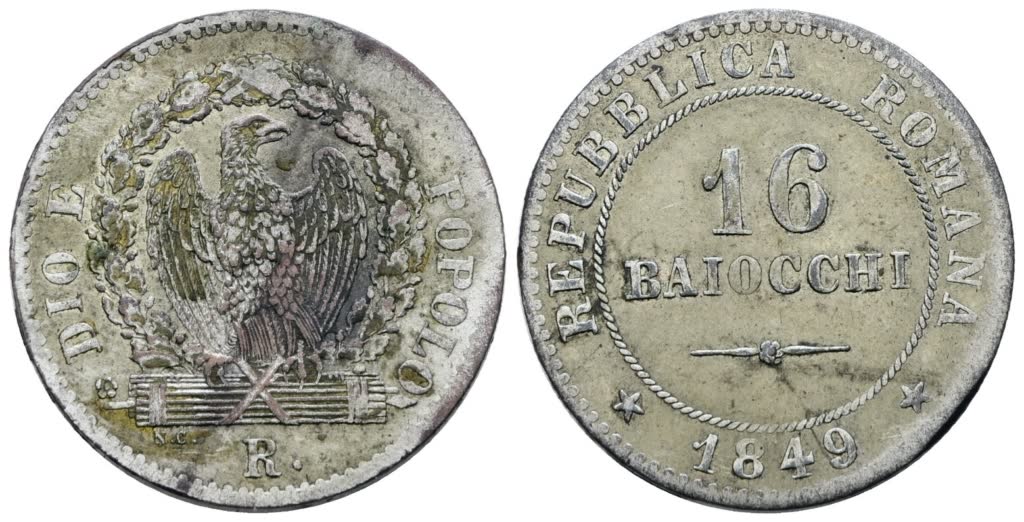 REPUBBLICA ROMANA. ROMA (1849-1849). 16 baiocchi 1849. Mi; 7,8gr; Gig.2; BB+