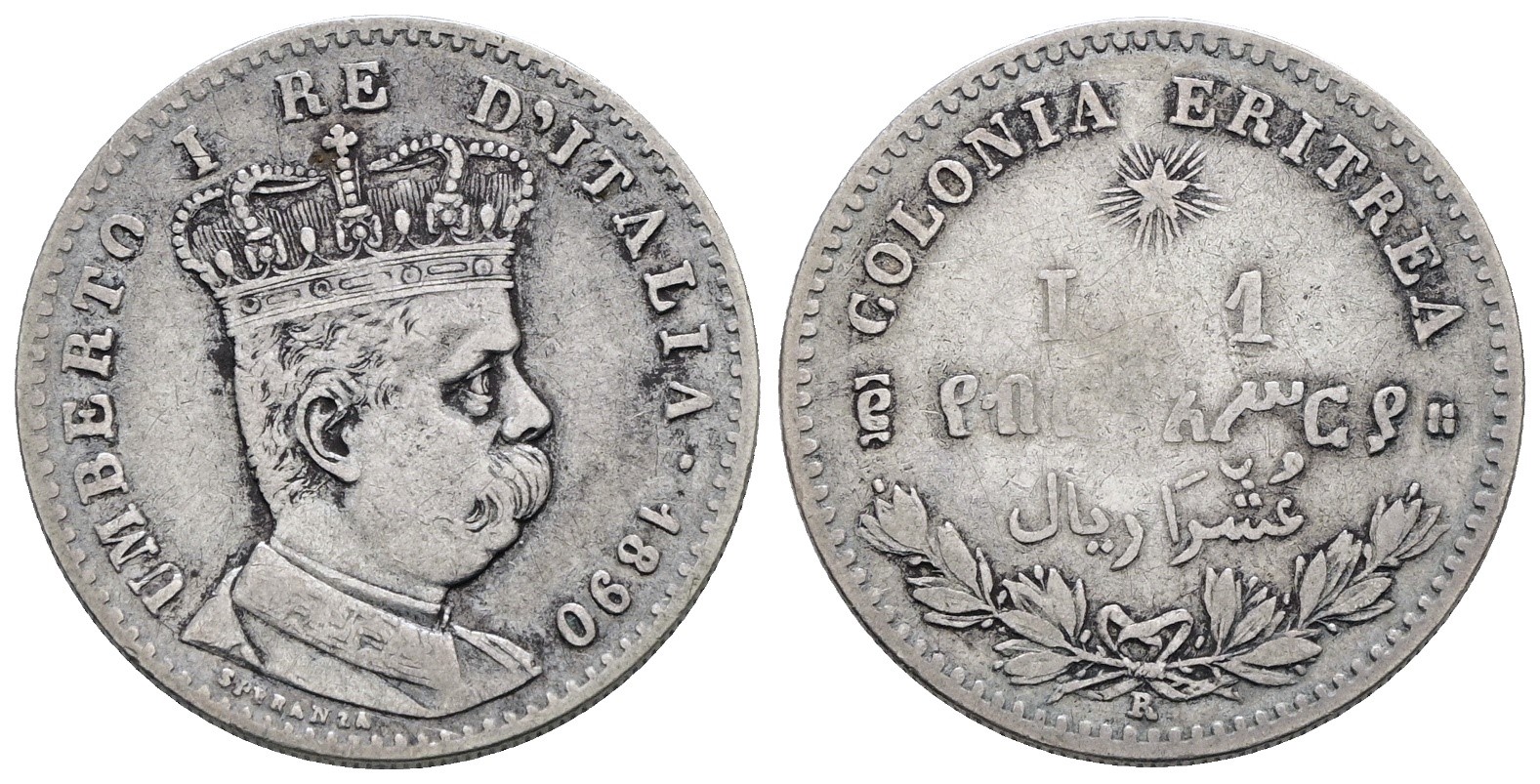 Lotto 759 | COLONIA ERITREA. Umberto I (1890-1896). 1 Lira 1890. Ag; 5gr; Gig.5; NC; Q.BB