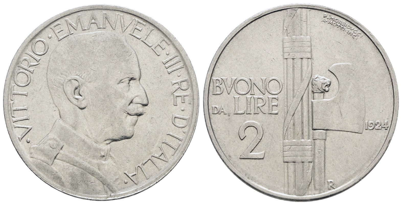 Lotto 806 | REGNO D'ITALIA. Vittorio Emanuele III (1900-1943). 2 lire 1924 "Fascio". Ni; 10gr; Gig. 106; SPL