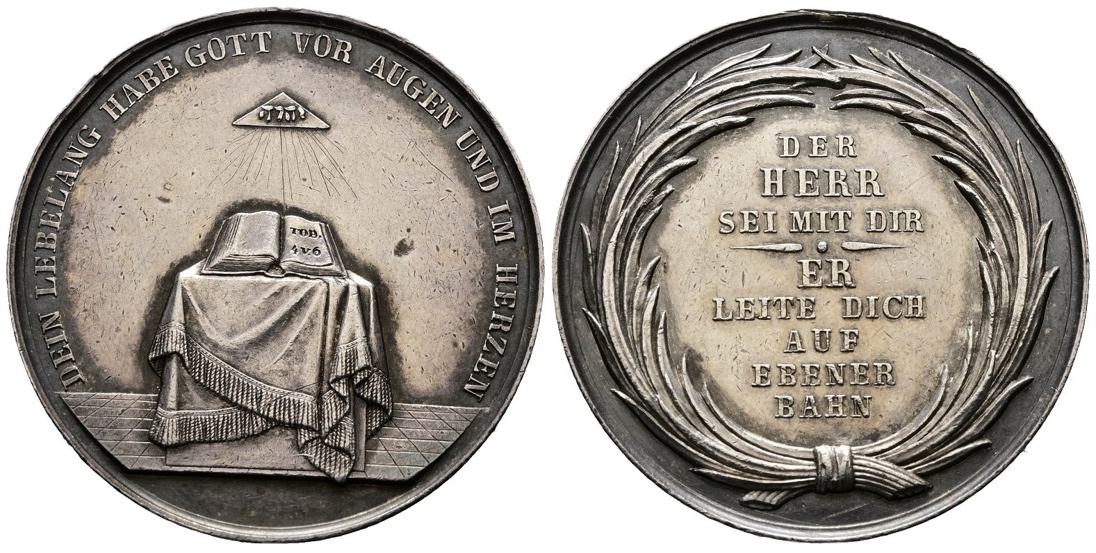 GERMANIA. Medaglia Cresimale con altare e Bibbia Ag. (19,20 g; 38,82 mm). BB+