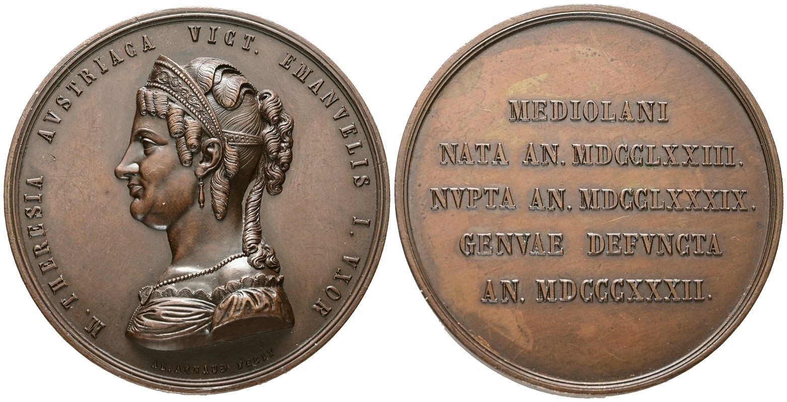 Lotto 977 | PERSONAGGI. Medaglia 1865 morte di Maria Teresa d'Asburgo. Opus: L.Arnaud. Ae; 65,95gr; 52,5mm. FDC