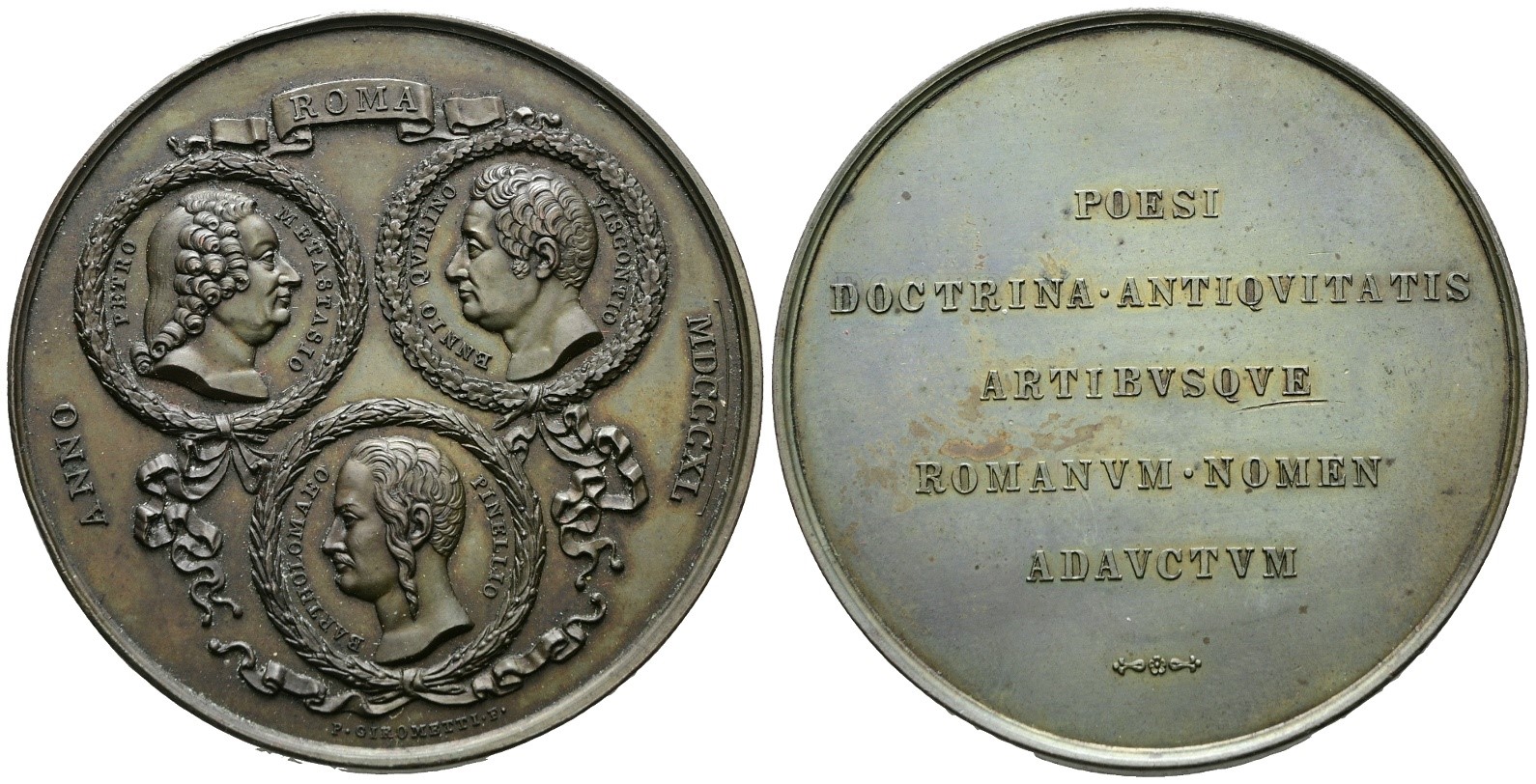 PERSONAGGI. Medaglia In Onore a Pietro Metastasio, E. Quirino Viscontio e B. Pinello 1840. Ae 50mm. SPL