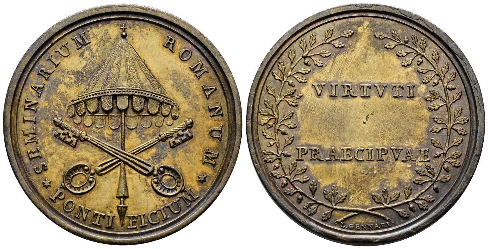 Lotto 997 | STATO PONTIFICIO. Pio VII (1800-1823). Medaglia (1805) per il seminario romano pontificio. Opus: Luigi Gennari. Bertuzzi 61; Ag dorato; 27,03gr; 40,5mm. Minimo colpetto al rov. qFDC