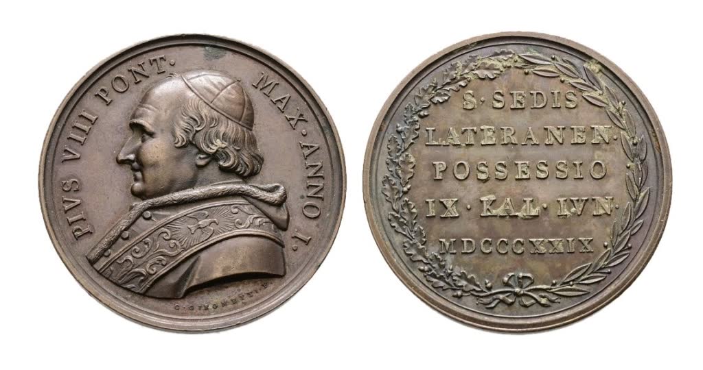 Lotto 1002 | STATO PONTIFICIO. Pio VIII (1829-1830). Medaglia 1829 Possesso del Laterano. AE 43,33mm. 38,42gr RR SPL