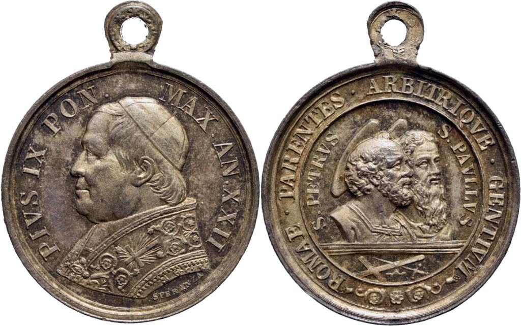 Lotto 1064 | STATO PONTIFICIO. Pio IX (1846-1878). Medaglia A. XXII Centenario del martirio dei SS. Pietro e Paolo. Ag: 24 mm. . qFDC