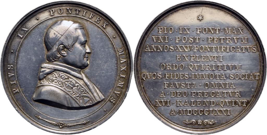 STATO PONTIFICIO. Pio IX (1846-1878). Medaglia - 1871 - XXV° del Pontificato Ø: 50 mm. - (AG g. 58) R . SPL-FDC