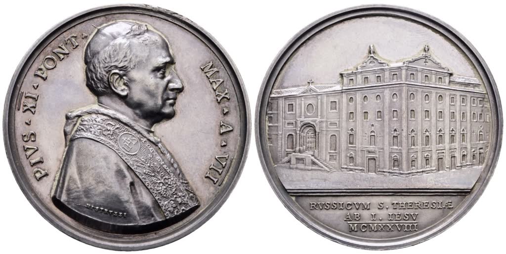 VATICANO. Pio XI (1922-1939). Medaglia 1928 annuale a.VII collegio russo. Ag; 35,90gr; 44mm. Fondi lucenti. qFDC