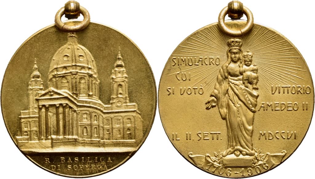 Lotto 1157 | SAVOIA - V.Emanuele III (1900-1943) - Medaglia - 1906 - Basilica di Superga Ø: 32 mm. - (AE dorato g. 12,6). FDC